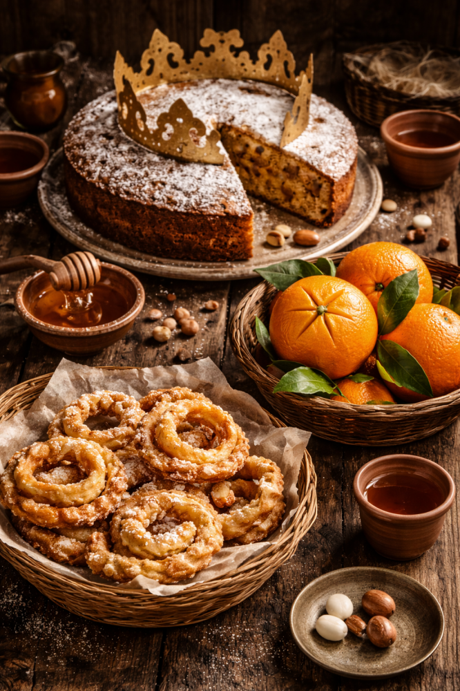 L’Epifania sarda è anche profondamente legata a riti culinari e simbolici. Il dolce dei Tre Re, ad esempio, veniva preparato inserendo nell’impasto una fava, un cece e un fagiolo: chi trovava uno dei legumi nella propria fetta era destinato alla fortuna nel nuovo anno e doveva offrire il dolce a tutti. In molte case si friggevano le tzìppulas, frittelle calde distribuite generosamente a vicini e passanti.